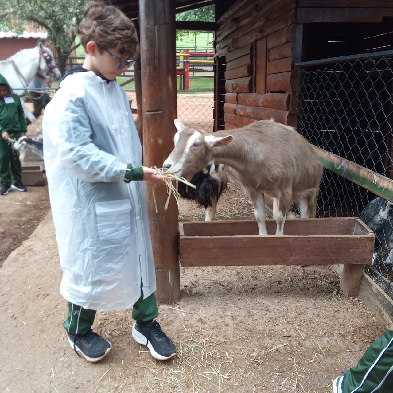 Logo ao chegar, os pequenos foram recebidos com entusiasmo pelos monitores da fazenda, que os guiaram por uma programação pensada especialmente para despertar a curiosidade e o cuidado com a natureza.
